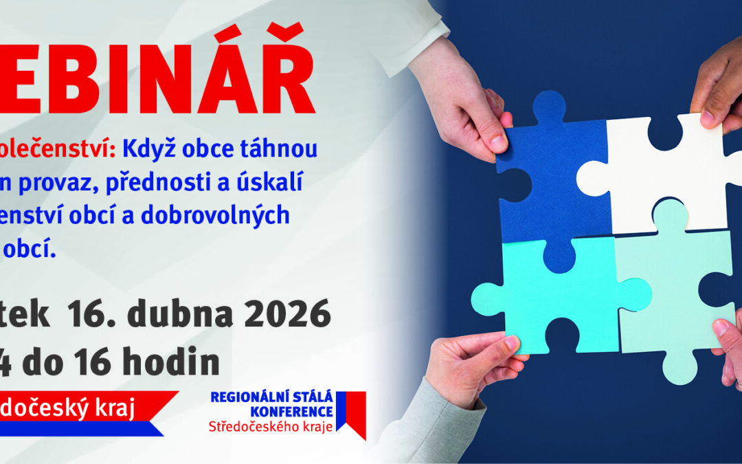 Dovolte mi s Vámi sdílet pozvánku na webinář na téma SÍLA SPOLEČENSTVÍ: Když obce táhnou za jeden provaz, přednosti a úskalí Společenství obcí a dobrovolných svazků, který pořadají kolegové ze Středočeského kraje. Webinář se uskuteční ve čtvrtek 16. dubna 2026, od 14:00 a sledovat ho můžete z pohodlí Vaší kanceláře…