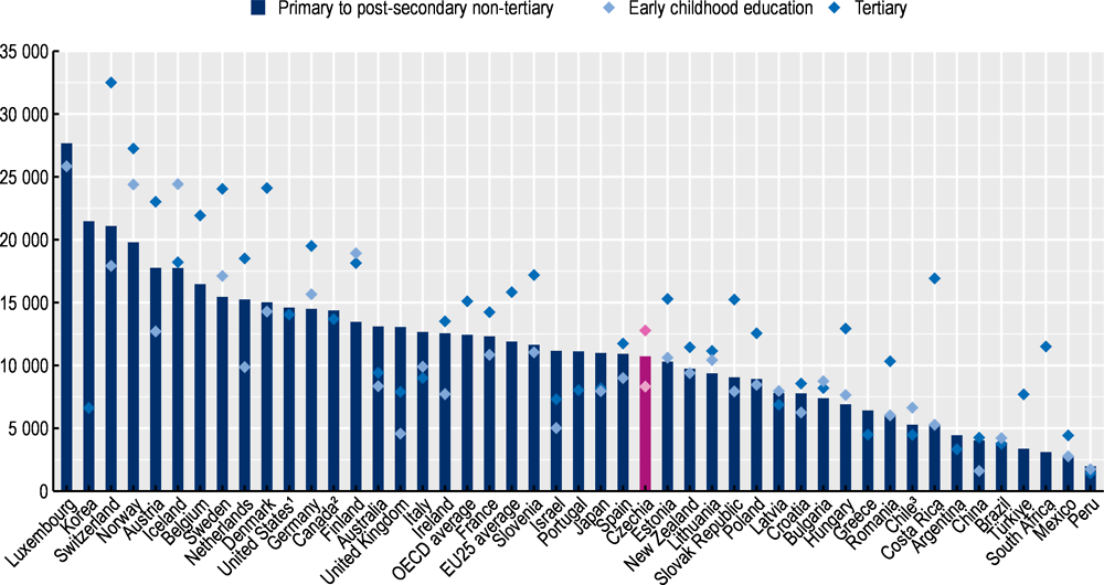 Podle zprávy OECD patří Česká republika mezi státy s nejnižším podílem terciárně vzdělaných osob. Terciární vzdělání absolvovalo v České republice pouze 27 % dospělé populace ve věku 25–64 let, zatímco průměr zemí OECD dosahuje 42 %. To může v budoucnu negativně ovlivnit konkurenceschopnost České republiky na trhu práce.